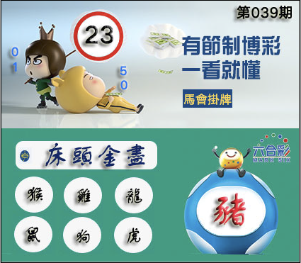 039期正版彩图挂:23 爆:猪 挂牌成语:床头金尽 挂牌出肖:猴鸡龙鼠狗虎